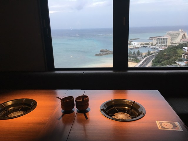 アネックス棟12階にある琉球BBQ「Blue」。最上階なので窓から見える景色も素敵です。6:30~10:00はブレックファスト、11:30~15:00はランチ、18:00~23:00はディナーとして利用できます。