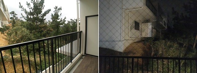 窓からの風景を夜も撮ってみましたが、この部屋からの眺望はリゾート感はありません。目の前の建物から見えそうなので、カーテンは閉めておいた方がよさそうです。