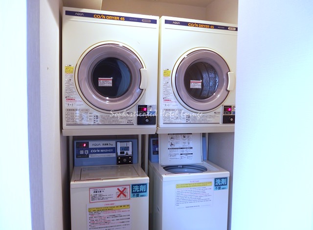 5階のコインランドリーは洗濯機2台と乾燥機2台で、洗濯機は1回300円(洗剤自動投入)、乾燥機は1回100円となっています。