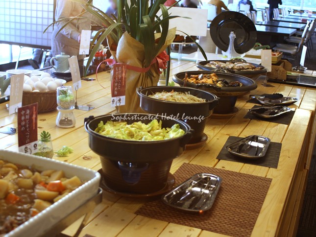 朝食はブュッフェ形式です。オープンは7時からだったので、オープン直後に行ってみたのですが、すでに会場の3分の1くらいの席にお客さんが座っていました。