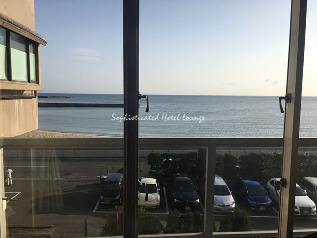 海月館の窓の外には、紀淡海峡が広がっています。今回、宿泊したお部屋は3階だったので、裏にある駐車場が見えたのは少し残念でしたが、それでも海を眺めながら、のんびりとすごす時間は日ごろの疲れが癒されるひと時でした。