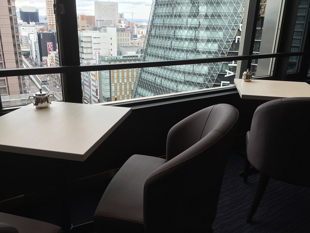 スカイラウンジ203(名鉄グランドホテル)のお席は、おしゃべりするならソファー席、ビジネスで利用するときは、テーブルの低いソファー席よりも窓際のテーブル席がおすすめ。