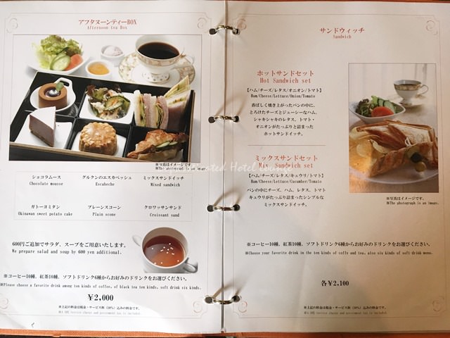 ホテル日航アリビラのラウンジアリアカラの予算は、コーヒーが750円~、紅茶(ポット)が800円~、ケーキが500円~(税サ込)と良心的です。