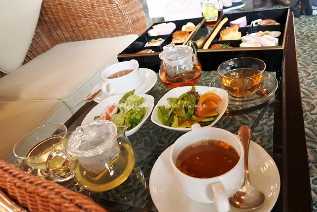 今回は、アフタヌーンティーに、サラダとスープを別に600円でプラスすることにしました。サラダのドレッシングはホテルメイドで、フレンチ、和風、ウコンから選べます。